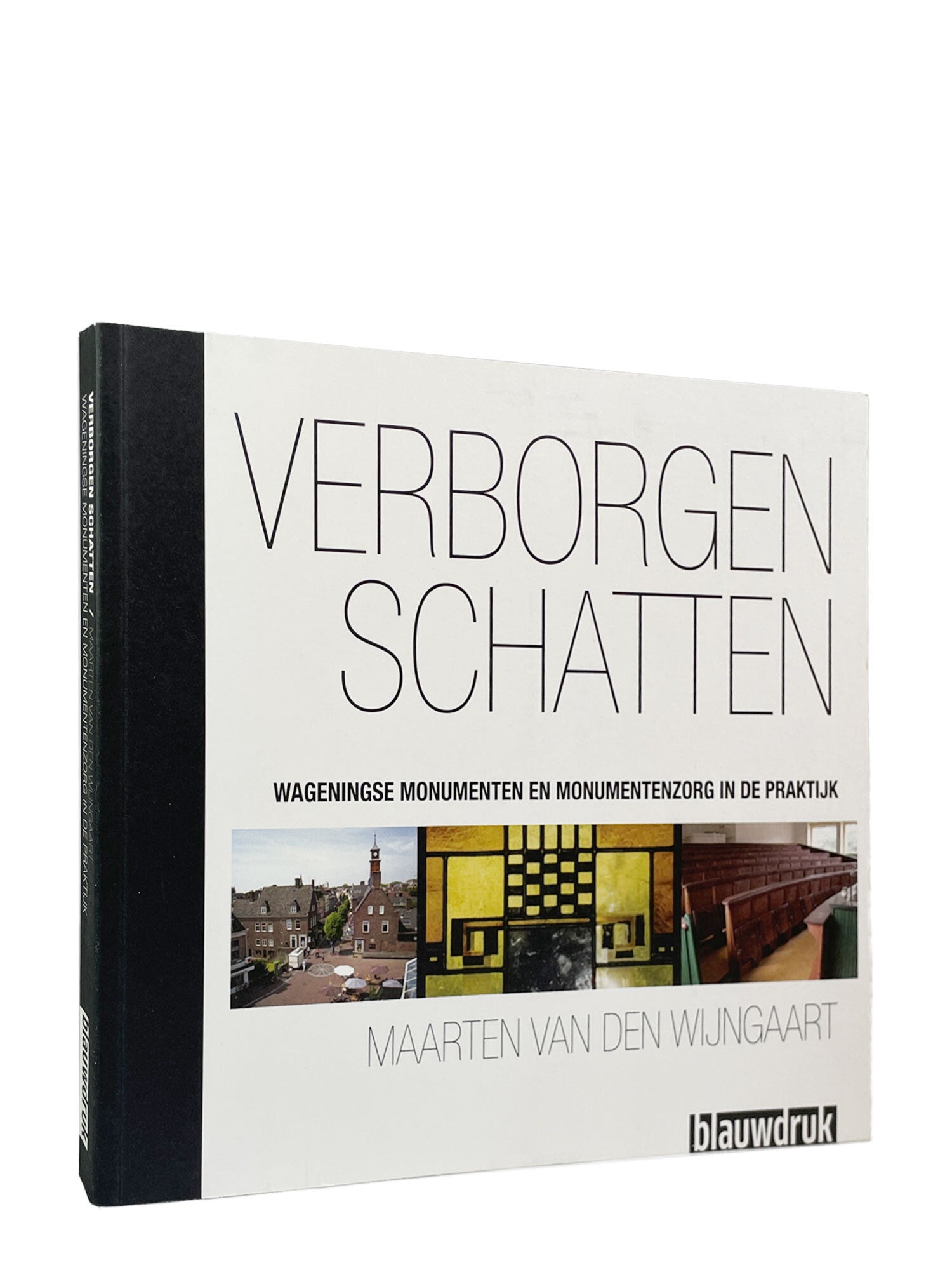 Vooruitlopend op de viering 750 jaar Wageningen onthult Maarten van den Wijngaart in Verborgen schatten alvast een deel van het Wageningse erfgoed. De foto’s zijn niet per gebouw geordend, maar thematisch, zo zijn er hoofdstukken over trappen, kelders en glas-in-lood. Het eerste hoofdstuk gaat over stadsgezichten, alle foto’s zijn genomen vanaf een ongebruikelijk, hoog standpunt. De thematische indeling maakt het boek tot een plaatjesboek. De teksten zijn vlot geschreven en getuigen van een deskundigheid en brede kennis van de onderwerpen. Van den Wijngaart kwam de afgelopen tien jaar op de gekste plekken. Zelfs voor Wageningers zal het boek verrassingen bieden.